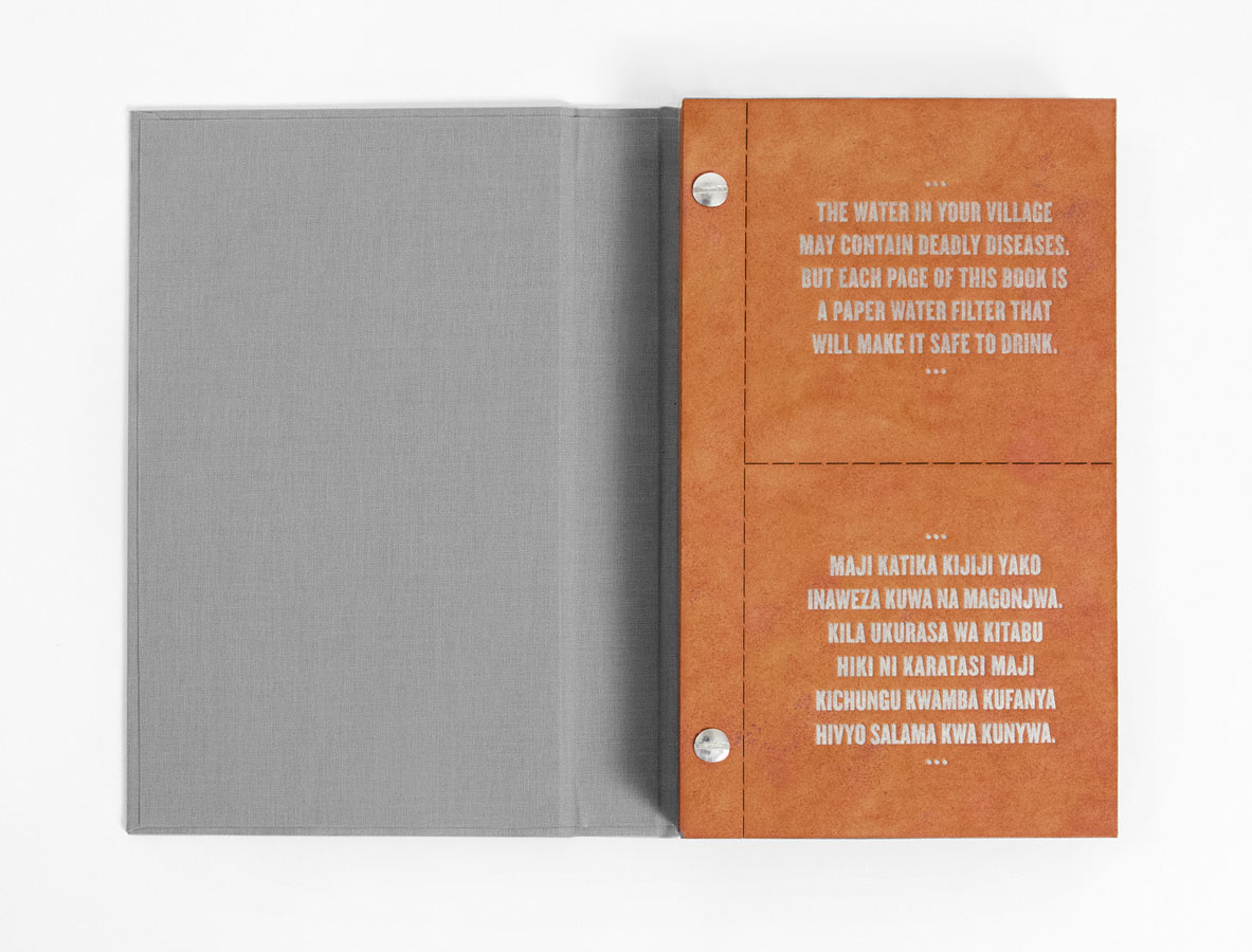 The paper is impregnated with silver nanoparticles and use safe food grade inks, capable of producing water of the same quality as US tap water. As the silver is not washed out with use each filter can last up to a month, with a single book able to provide clean water for four years.