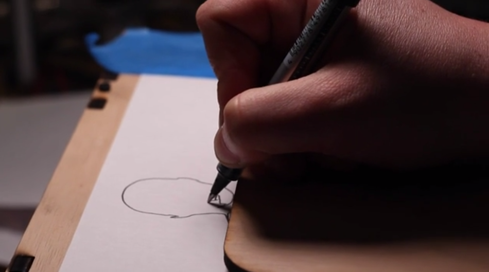 As you rest your hand on a small board and hold a pen over the edge, the board starts to move from tracking the contours of your face as scanned by the attached computer. And despite the progeny of the portrait, it still has a very handmade and non-digital feel.