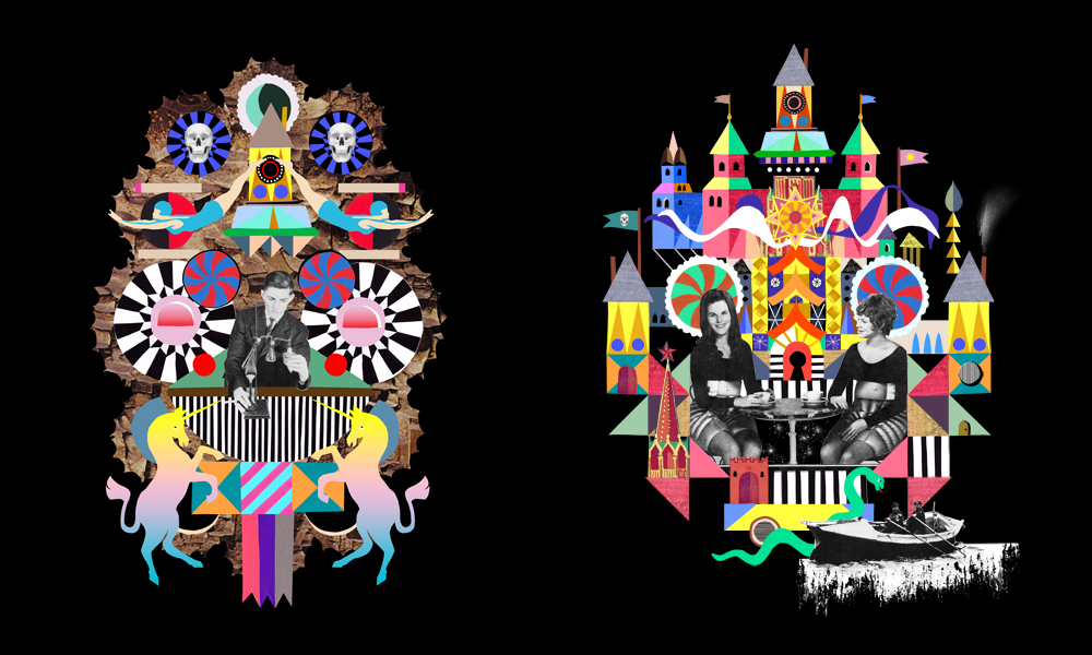Since graduating from Nottingham Trent University with a 1st Class Honours in Graphic Design in 2010, he has been featured in various publications from i-D as one of the “Top 10 Illustrators To Keep One Eye Open For” to The Creative Review and Design Week. But even more than the accolades, what stands out with the enterprising newcomer is the selection of his merchandise available in London and on his website. The combination of geometric patterns and retro photography make for appealing prints, postcards and even stickers and by allowing his audience to own a piece of his handiwork in a variety of formats, his personal work is supported and its future promising. “I think that my personal and editorial work will probably branch off into two tangents and through that I will be able to define where my work is going. I’m still at the stage where my style is developing though, so it is exciting to see where it goes. People aren’t stupid: if you continue producing the same type of work they’ll just get bored of you.” And how does he describe his said style at the moment? “My work has a playful element but I still like it to feel sophisticated with the black and white imagery.” It’s contemporary youth culture combined with a childhood obsession for the circus, brought together through an education in Fine Art – and it’s the combination of the handmade with the digital that allows his fantasy to become a visual reality. I like things not to be perfect and those imperfections are often the most beautiful things.