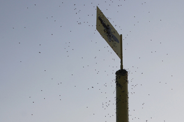 Located high above our cities, the collective have designed Sky Hives, consisting of a 6 metre pole with a hive perched on top. The hives can be winched up and down as desired, keeping bees out of harms way of unsuspecting passers by, but allowing collectors to harvest the honey. The labour-intensive tasks of looking after the bees is shared by the Bee Collective in the area, splitting up responsibilities between members.
