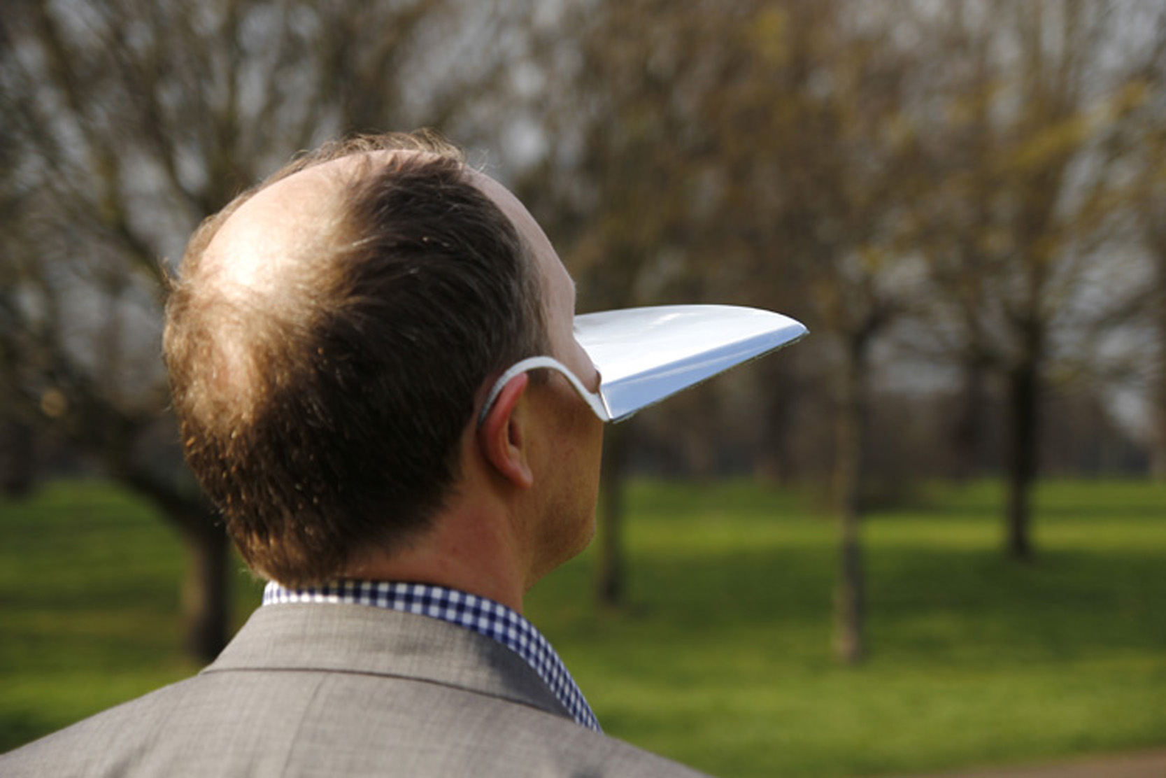 The designer took her invention for a test drive with Cloud Appreciation Society founder Gavin Pretor-Pinney. The small team went for a Sky Walk around Hyde Park with the reflective invention strapped to their faces.