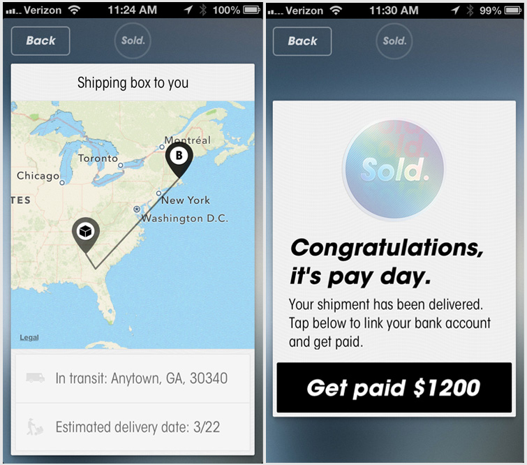 Once the item has been sold on a market of their choosing, they'll send you a pre-labeled, pre-paid and pre-insured box filled with bubble wrap, and allow you to book a UPS pick-up with the tap of a button. All payments go straight into your bank account, so no extracting funds from PayPal.