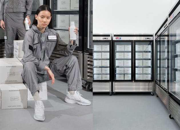 Sean Raspet, artist and in-house flavour designer for food start-up Soylent, commissioned Berlin-based fashion designer Nhu Duong to create uniforms for Soylent staff. First showcased at Frieze New York ,(with Berlin gallery Société), the resultant collaboration did much to blur the lines between fashion brand, promotion, and installation.