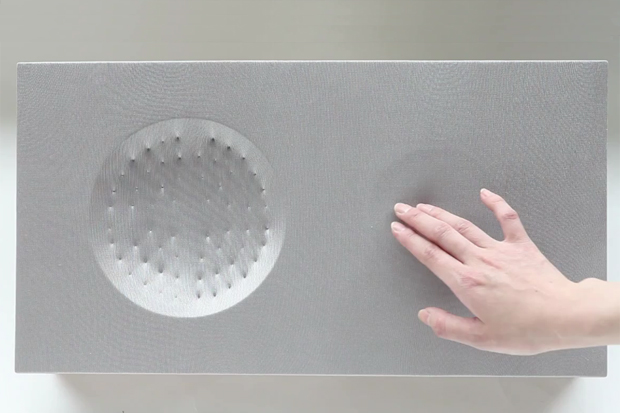 Jo says, "My proposal was to re-define the role of the surface in future lifestyle, exploring how surfaces can be an integrated as part of a product or environment. As you control the functions [backwards and forwards, volume control and equaliser], the left surface physically responds to the controls. Tactile surface also responds to the beat of the music."