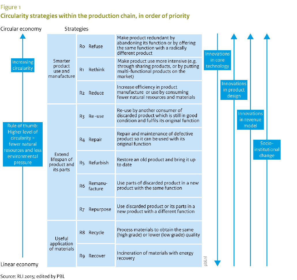 Circularity strategies within the production chain, in order of priority.