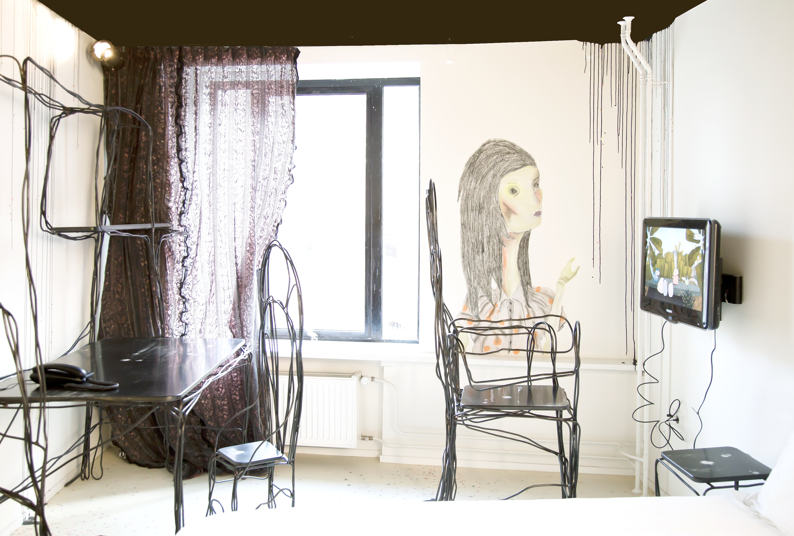 Focusing on the fashion aspect of interiors, eight designers and graduates from the Amsterdam Fashion Institute (AMFI) were asked to dress the rooms as if they were models. This brief was taken to all of the hotel's 63 rooms while managing to create an individual look for each.