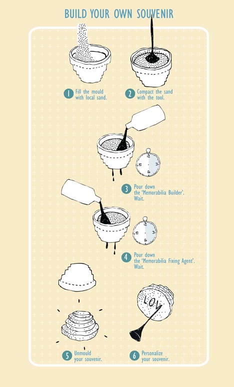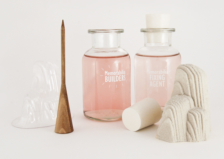 Using a harmless bacteria called Sporosarsina pasteurii to calcify sand into various shapes, designers William Boujon and Julien Benayoun of Bold-Design have created a DIY structure making kit called The Memorabilia Factory.