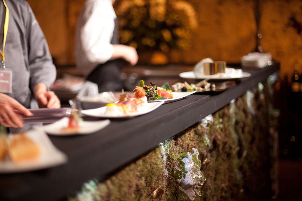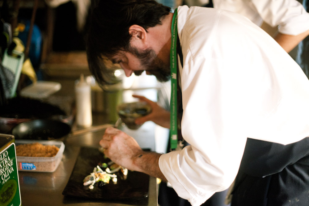 Then it was dinner time. Guests were ushered into the temporary dining space, where they ate a series of delicately presented plates served by chefs including London-based experimental chef Nuno Mendes, German gourmet specialist Juan Amador, sushi sensei Ollysan and star chef Matthias Schmidt. A delicious experience, and an intriguing juxtaposition to the raw street art and installations that were showing adjacent.