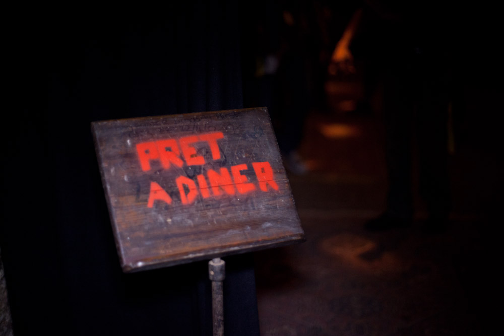 Last night in the dark, dank undercrofts of the Old Vic Tunnels, street art and fine dining combined for an installation that was a treat for the eyes as well as the palette. The event was a collaboration between German-based pop-up restaurant Pret a Diner and street art gallerist Steve Lazaridis.