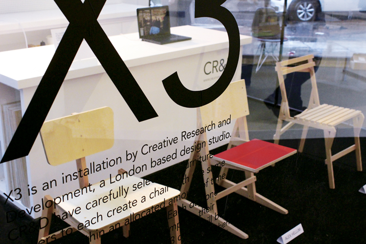 The X3 installation took place over 3 days at London Design Festival, where each was given a day to create their unique piece. Visitors to the workshop space were able to observe each maker in action; from the design concept stage to the finished production. The three designers applied their individual imagination and creativity to the project, and the construction over each day was additionally streamed live online.