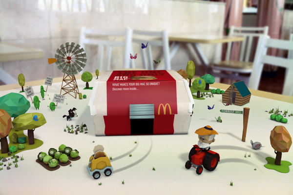 The app is a powerful combination of the two main methods of delivering anaugmented reality experience. GPS determines which McDonalds you're dining at. Image recognition software can tell what food you've chosen once you point your lens at your meal. These data points are combined to determine which stockists provided the raw materials for your meal. Once the data is correlated a food provenance pageantry plays out on your smartphone screen. ( Jump to 0:49 in the video below to see what we mean!) McDonalds has also built in the personal stories of the food providers, capitalising on another facet of organic foods popularity.