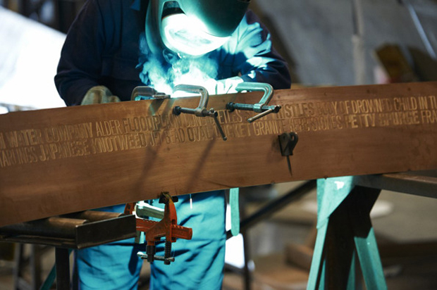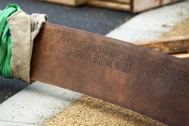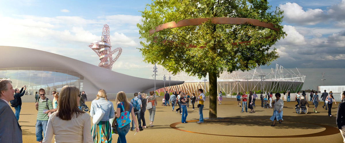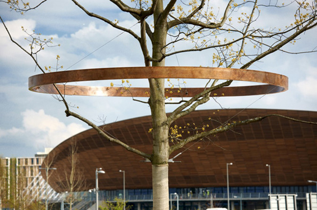Olympics-inspired art and architecture can range from inspiring to insipid. Of course beauty is in the eye of the beholder, but in our opinion artists Ackroyd & Harvey tastefully captured the spirit of the Olympics with their contribution to the London 2012 Games.Olympic Park in Stratford, London is now home to ten new trees, each ringed by a 500 kg steel or bronze band. The bands are engraved with text based on the work of Lucy Harrison, who collected information from the local communities and combined it with research from the Museum of London. Harry Pearce and Naresh Ramchandani of Pentagram designed the concept and constructed the rings.