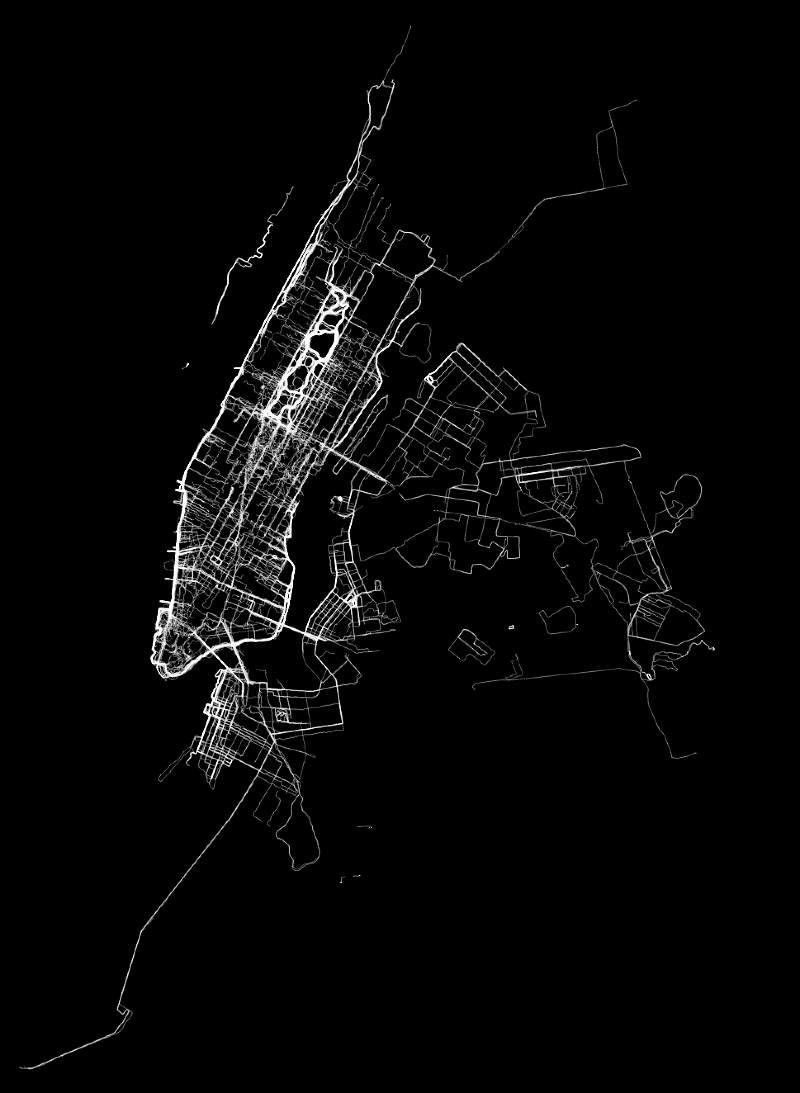 The project paints a revealing portrait of where, when and how New Yorkers run. Once broken down the data can identify popularity in routes, times of day, patterns of pace and distance, and as Cooper Smith's above piece shows, trace the outline of the City.