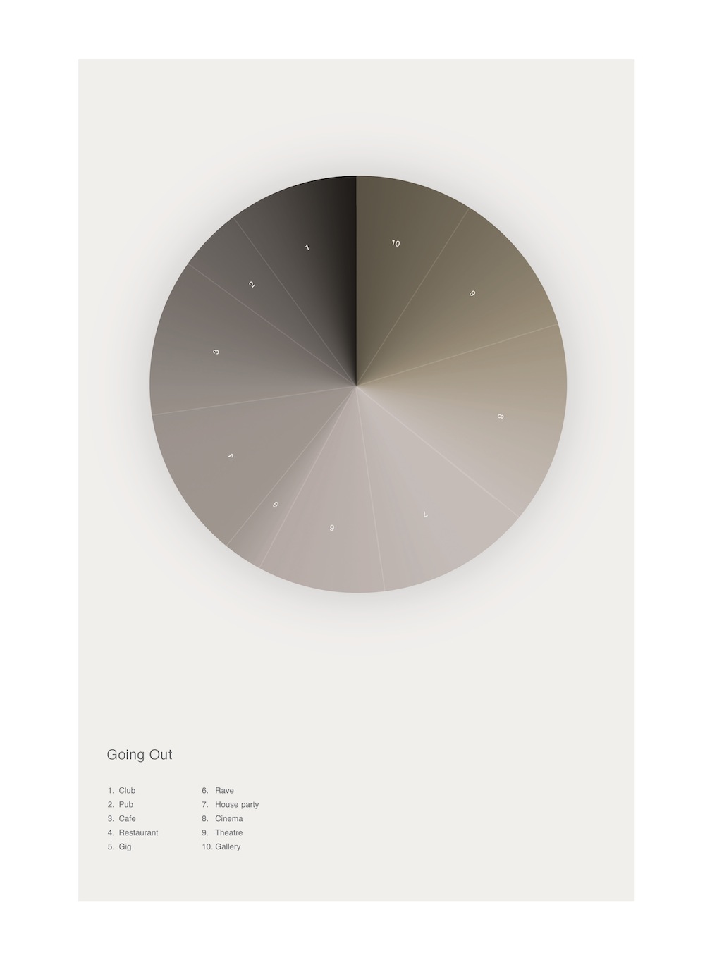 For this audience cafés are the hot-spot, and we found attending clubs, gigs, raves and theatre venues was fairly constant across all age groups. But while spending time at galleries, restaurants and pubs all increased with age, going to the cinema and house parties seemed to go the opposite way.